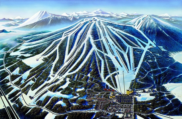 그림에서 보이는 것처럼 길고 쭉쭉 뻗은 슬로프들이 산을 빙~ 둘러싸고 있습니다.