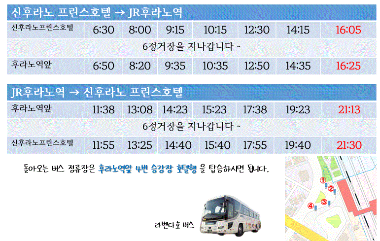 겨울 한정 후라노 이브닝 셔틀버스 시간표 (24-25시즌 기준)