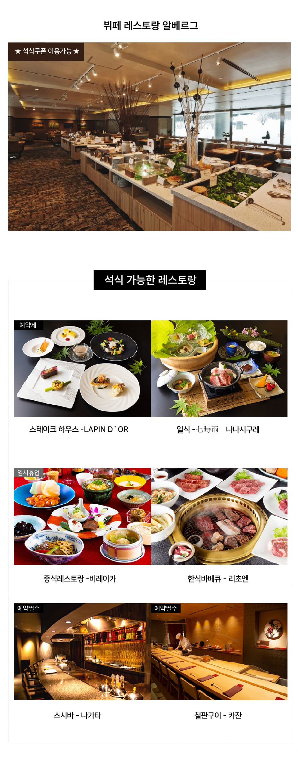 조/석식은 뷔페 레스토랑 식사 기준입니다. 다른 레스토랑 이용시 추가요금이 발생됩니다.