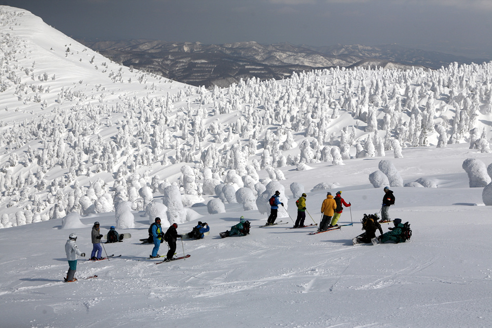 일본 유일의 산악스키장. 아오모리현 핫코다산은 일본 최고의 강설지구로 스키장 건설로는 천혜의 자연조건을 갖춘 곳임에도 불구하고 국가의 핫코다산 자연보호정책으로 스키장 건설이 철저히 제한되고 있어 유일하게 핫코다산스키장 한 곳이 게렌디를 갖추고 있다. 그러나 그루밍 된 슬로프는 5면 밖에 되지 않으며, 백컨트리의 산악스키를 즐기려고 일본 전국에서 매니어들이 찾아오는 곳이다. 거대한 수빙(스노우 몬스타)숲 사이로 100% 퓨어 파우더의 천연설을 가르며 활강하는 즐거움은 상상을 초월하는 신선한 충격으로 다가올 것이다.