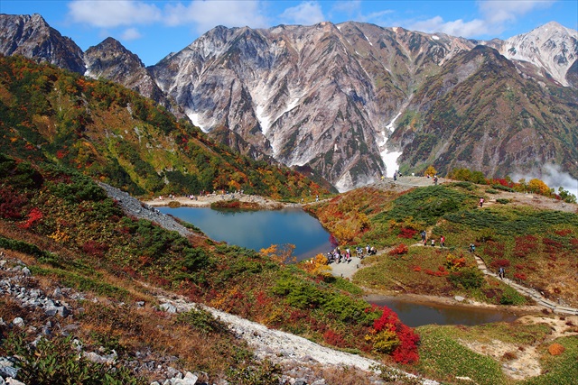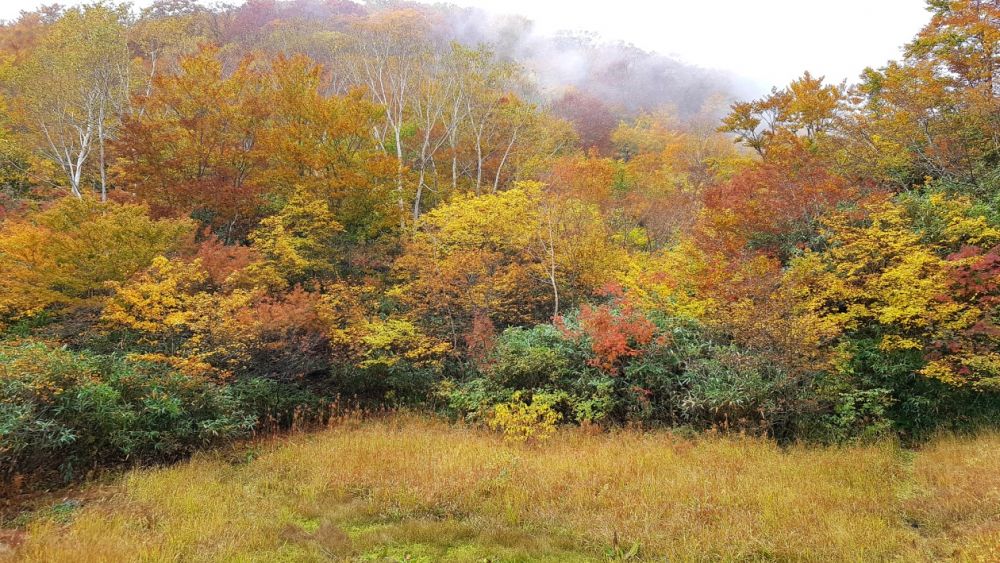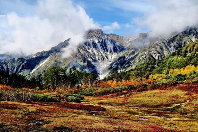 해발고도 2천미터를 넘어가는 하쿠바 연봉에서는 9월 말에서 10월 초 사이에 가장 아름답게 물든 단풍을 볼 수 있습니다.